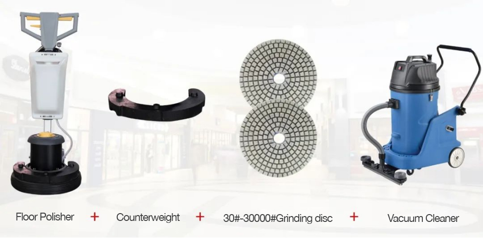 Use a crystal surface machine with 50# to 3000# grinding discs to continuously polish and polish from rough suction until the surface is seamless, flat and bright, and use a vacuum suction machine to suck up the sewage to prevent the sewage from polluting the ground for the second time.